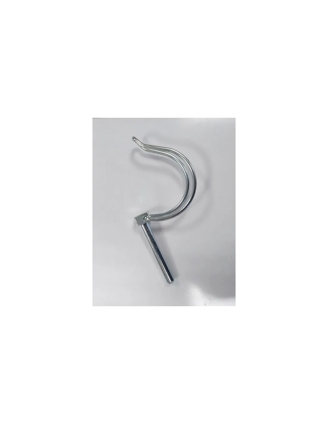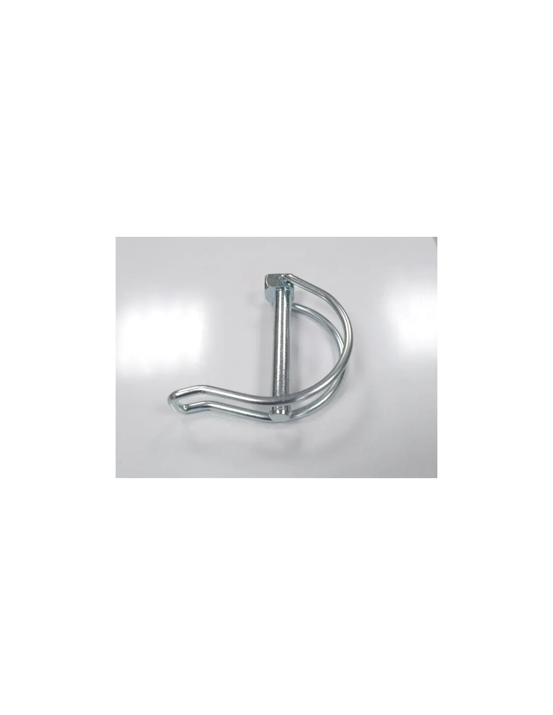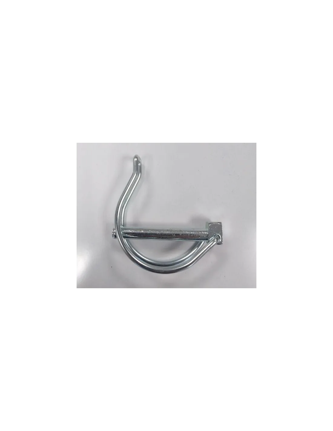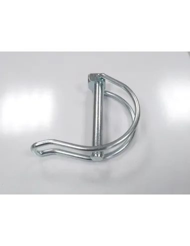 Metal retaining pin with loop to secure backrest to chassis.