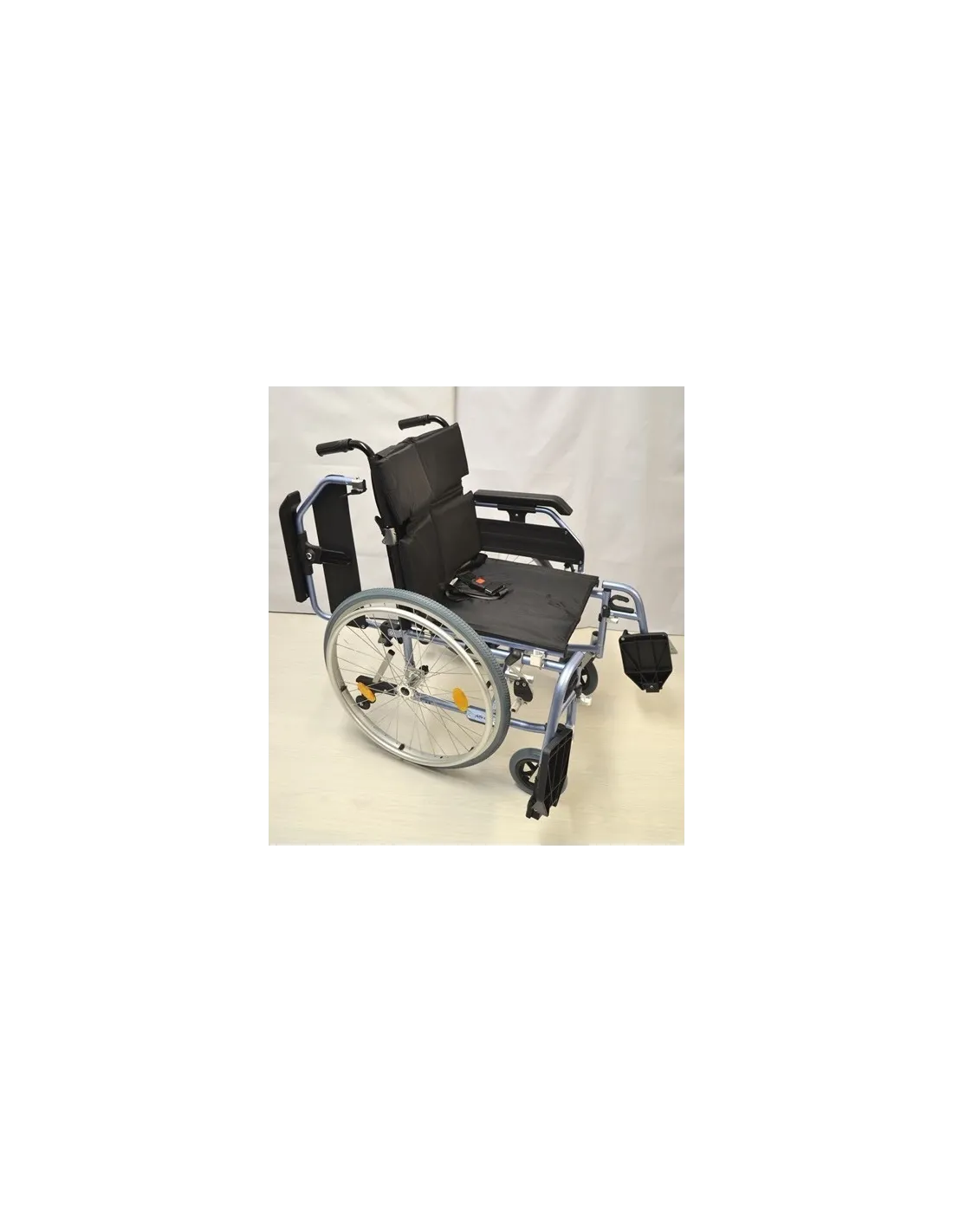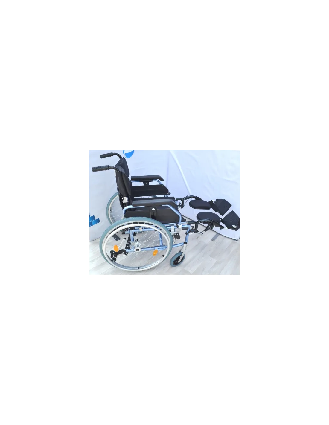 This wheelchair has the option of elevating legrests, e.g: if the knee cannot be bent.